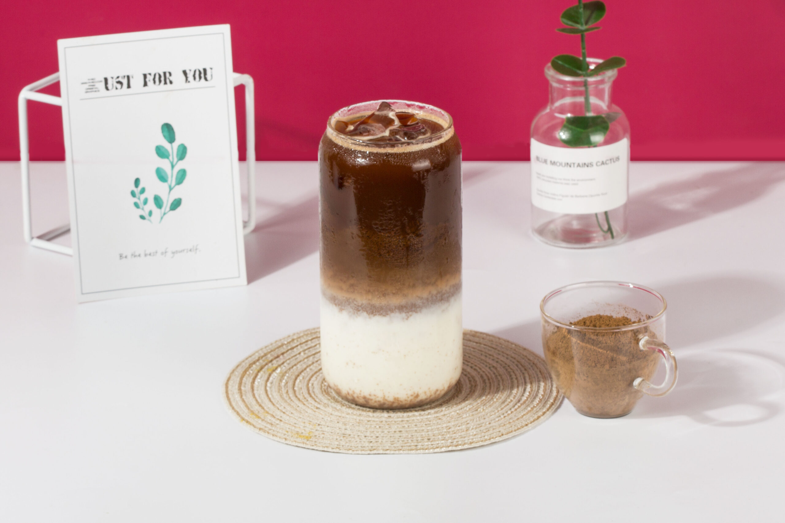Pour the tea powder into the blender, add water and stir evenly. Add milk, fructose, and ice cubes to the finished cup and stir well, then pour in the tea powder liquid.